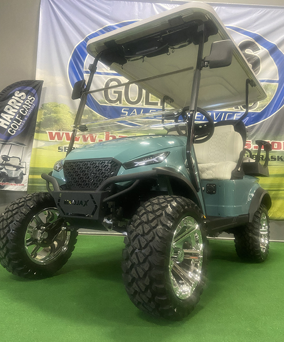This MadJax XSeries has a sea storm colored body, white premium seats and the three year MadJax Factory Warranty. Contact Harris Golf Cars to learn more about these new MadJax vehicles new to our inventory!