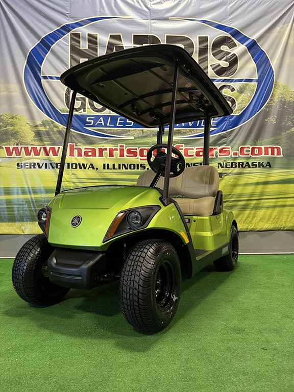 Check out this brand new 2025 Yamaha Drive 2 gas golf car with a peridot green factory painted body, beige touring seats, black top and the Yamaha QuieTech package. Let us know if you have any questions!